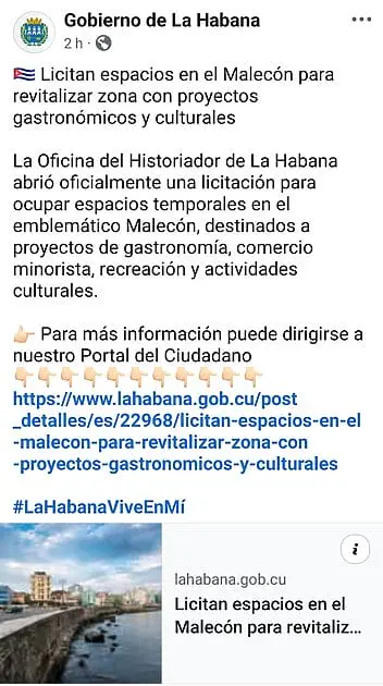 La Oficina del Historiador de La Habana abrió este mes una convocatoria pública para adjudicar espacios del Malecón con proyectos gastronómicos, culturales, comerciales y recreativos. ¿El objetivo oficial?. Revitalizar la zona. ¿El no dicho?. No hay recursos para hacerlo desde arriba, así que toca abrir la puerta a quien sí tenga creatividad, músculo y ganas de hacerlo.