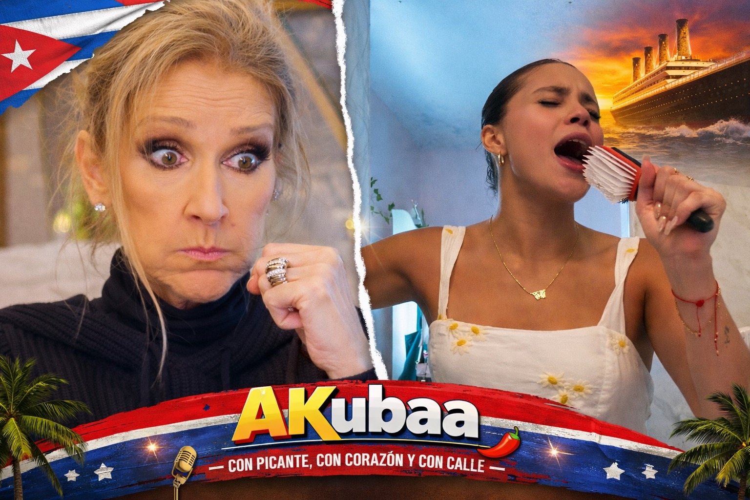 La canción no es cualquiera. My Heart Will Go On, el himno eterno de Titanic, es una pieza que exige técnica, control y alma. No se improvisa. No se sobrevive a medias. Juliette no solo la cantó. La sintió. Cuando veo el video, pienso en algo muy cubano: aquí se canta en la cocina, en la azotea, en el apagón. Se canta mientras se espera el pan, mientras suena la planta eléctrica del vecino. El baño no fue un detalle pintoresco; fue una metáfora del país entero: creatividad dentro de la limitación. Y entonces ocurrió lo impensable. Céline Dion lo compartió. Lo llamó “increíble”. Le dijo que nunca dejara de soñar. En ese momento, no solo reaccionó una estrella. Reaccionó la diáspora.